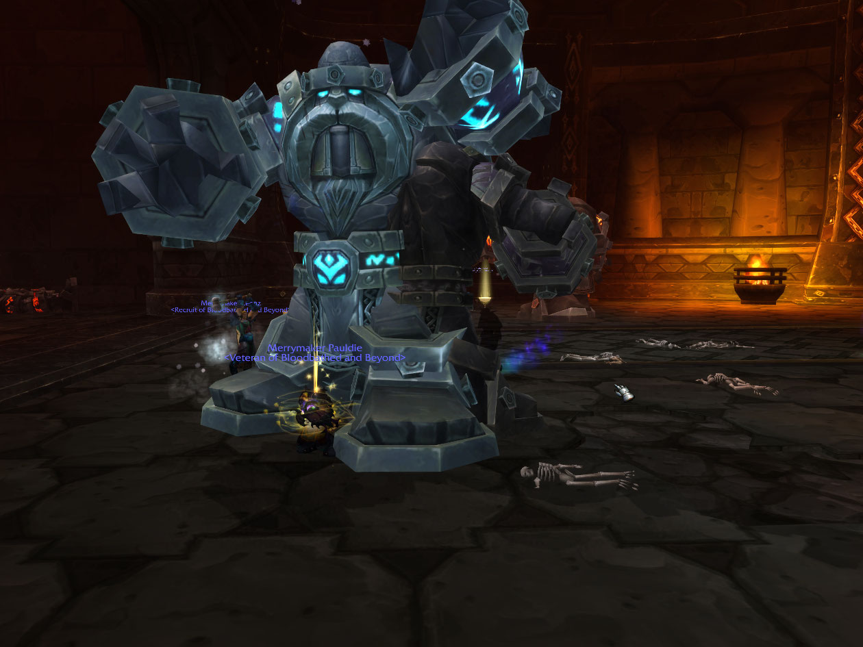 It took like an hour and a half but we got the golem bosses down. I win the epic ring, Security Measure Alpha. I like that name! Sure beats “Pus Ball of Snot Boogers” like from ICC.