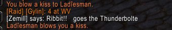 I catch a TB battle with Nilvana later in the afternoon, and on my way to defend a tower I run into a rogue named [url=http://us.battle.net/wow/en/character/whisperwind/lad%C3%AEesman/advanced]Ladîesman[/url], yes with the character like that. I’ve seen him many times in WG too. For some reason the alliance that were there all ran off and I was left to deal with the blood elf rogue myself, and I killed him and blew a kiss at the bones. At 20% health I go to run off but he’s back already, saps me and kills me. Bleh.