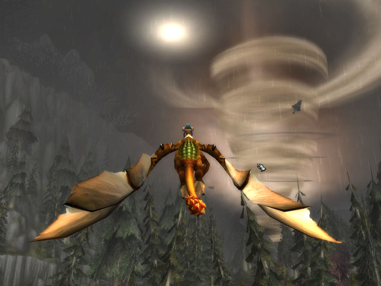 Today I set out in Hyjal again to try to get my rep up a bit. On the way over there I noticed this giant tornado, and you can see trees, and I swear I saw a cow or two, swirling around in it.