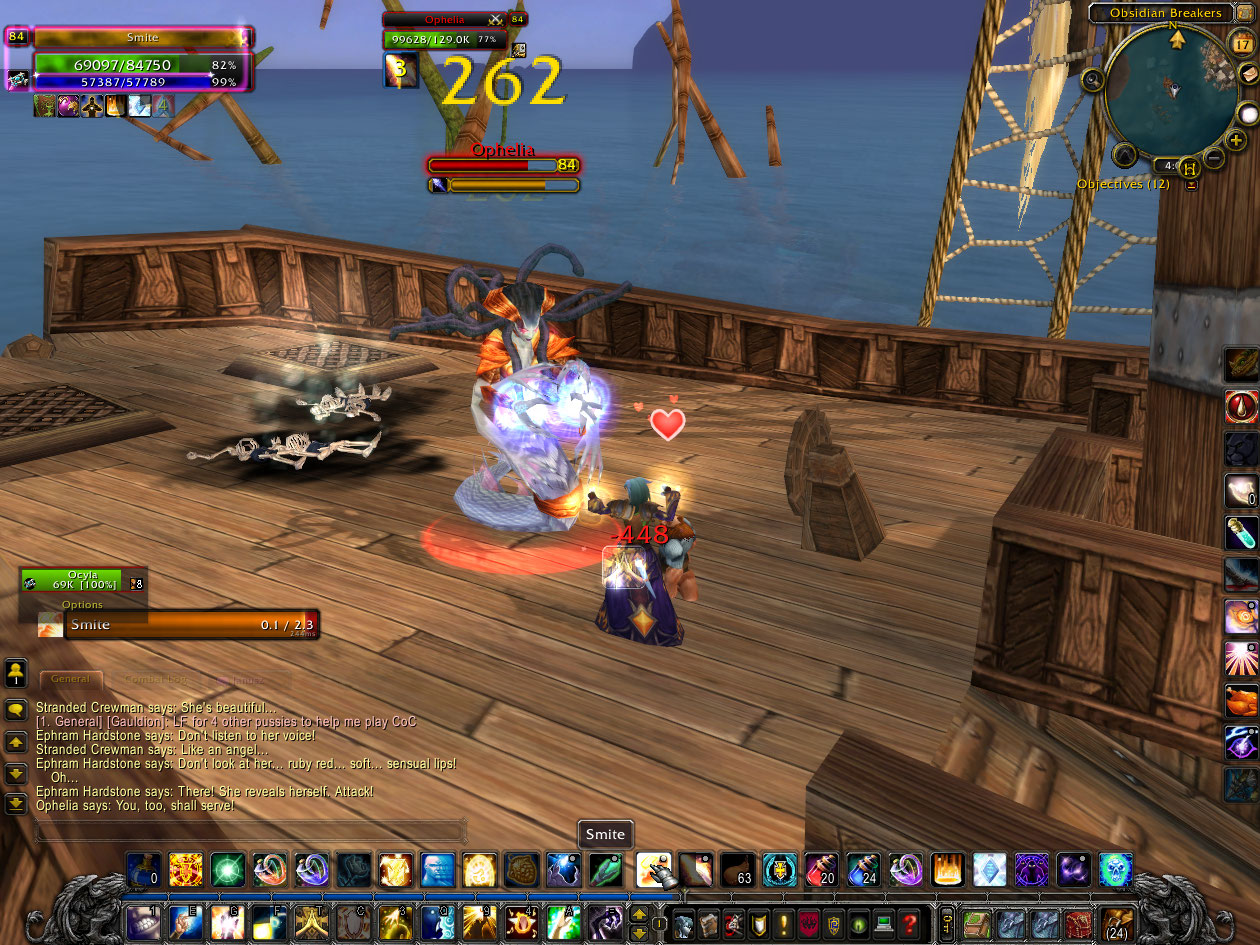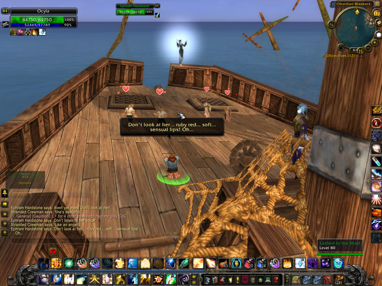 After the quest chain ends, as far as I can tell, with freeing an evil satyr looking thing, I head out to Twilight Highlands on the advice of Janusz on getting more exp. I some how let a dwarf convince me to be shot in a cannon up to a ship, amoung other things. Then I head out to a boat where the crew are taken in by some kind of Siren coming out of the water.
