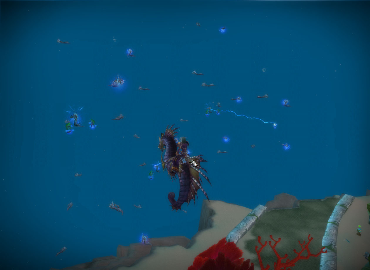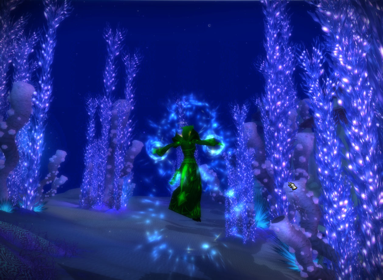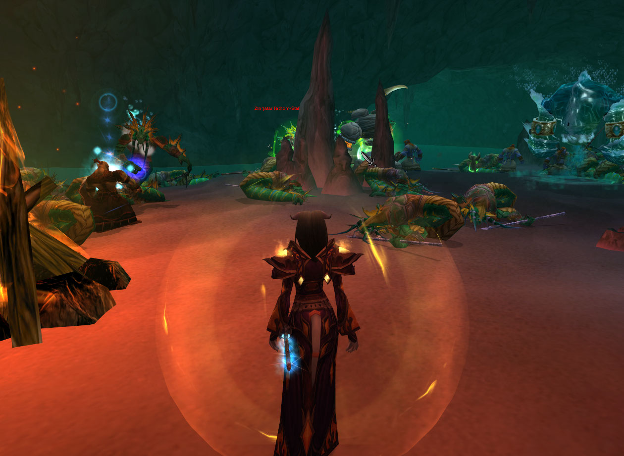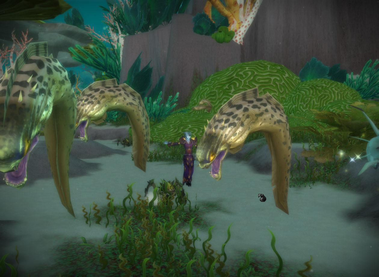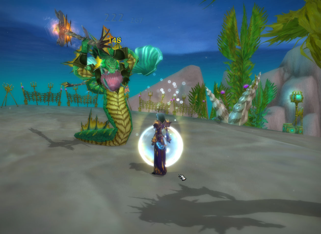 This one is just me killing a bunch of cool eel things. My priest, oddly enough, does better at surviving melee damage than my mage. Of course I am running around in my more defensive “pvp” disc spec too.