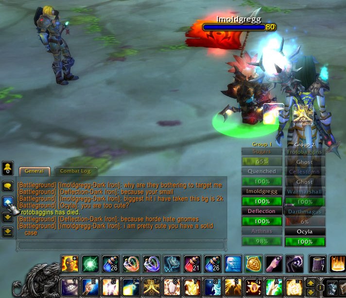 Next one, WSG, a win, 93 honor there though, 2 killing blows, 2 deaths, 37 HKs. 3/3 flags again. We spent some time camping their graveyard and I have a little convo with this gnome: