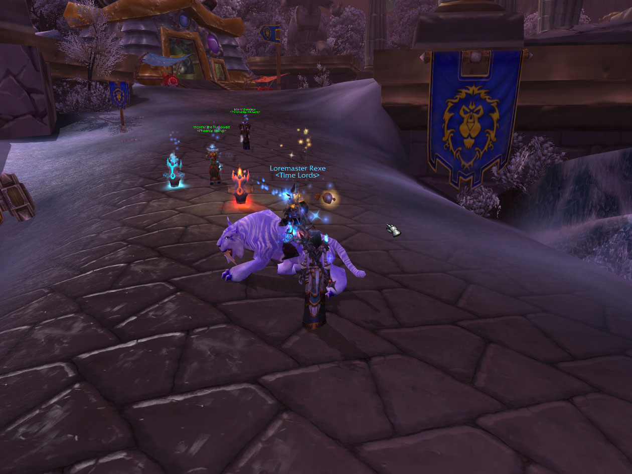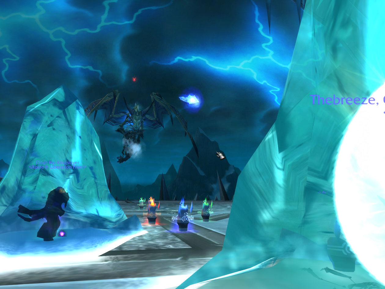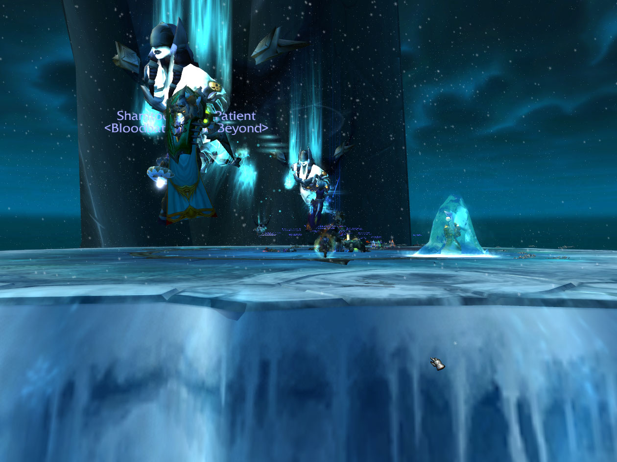 Third run we got to the third phase, and I survived the wipe. It’s pointed out the fail rogue is wearing mostly pvp gear. sigh. We fail again at last phase the 4th time, but I survive again due to someone getting me in their ice block. Everyone starts discussing blame and someone says “Roll for blame” and I LOL for real on that. Next go I die in an ice tomb, even throwing a renew on myself before it hit. Well, at least I don’t have to do much dead. Dying gives one good picture opportunities though. After that point though I lose track of the wipes. We get it finally and I get Exalted with Ashen and get my new ring. I was dead through that, however, died at like 100k health on the boss.