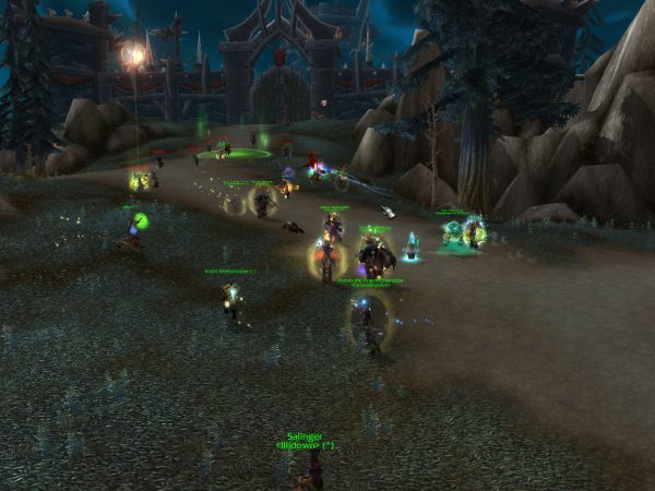 I then run Arathi we which lose, but sort of under odd circumstances. A rogue gets me solo at LM, I call out for help and a DK, Dargon-Kael’thas (with the two dots over the O) comes up and saves me. We start a convo while I throw out Holy Nova to knock the rogue out of stealth should they still be around and he lays down whatever DK’s do, to do the same. And even with us both doing that, both standing around the flag, somehow the banner turns to Horde and they win. We gripe in PMs back and forth for a bit and they say they will miss me anytime from now on.