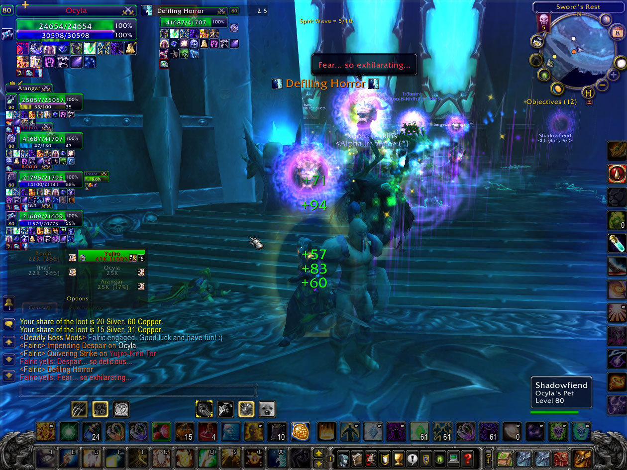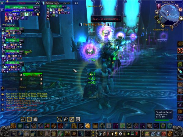 VOA 25 I’d rather not talk about but basically a warrior decides to take on trash mobs, I get flattened by a rogue mob and die, and the group basically wipes. We then try to go again short 1 healer and wipe half the group again. We fail miserably at the Frost boss, about 6 people leave, we regroup and get him down. Nothing cloth drops. We also do the fire boss and again, nothing cloth drops. It took me a full hour or so to do these 2, I was kind of pissed. The frost mage crows that she had 7600 dps, mostly by not ever switching to the Frozen Orbs, adding yet another mage to my list of mages that suck. I haven’t found a pleasant one yet anyway.