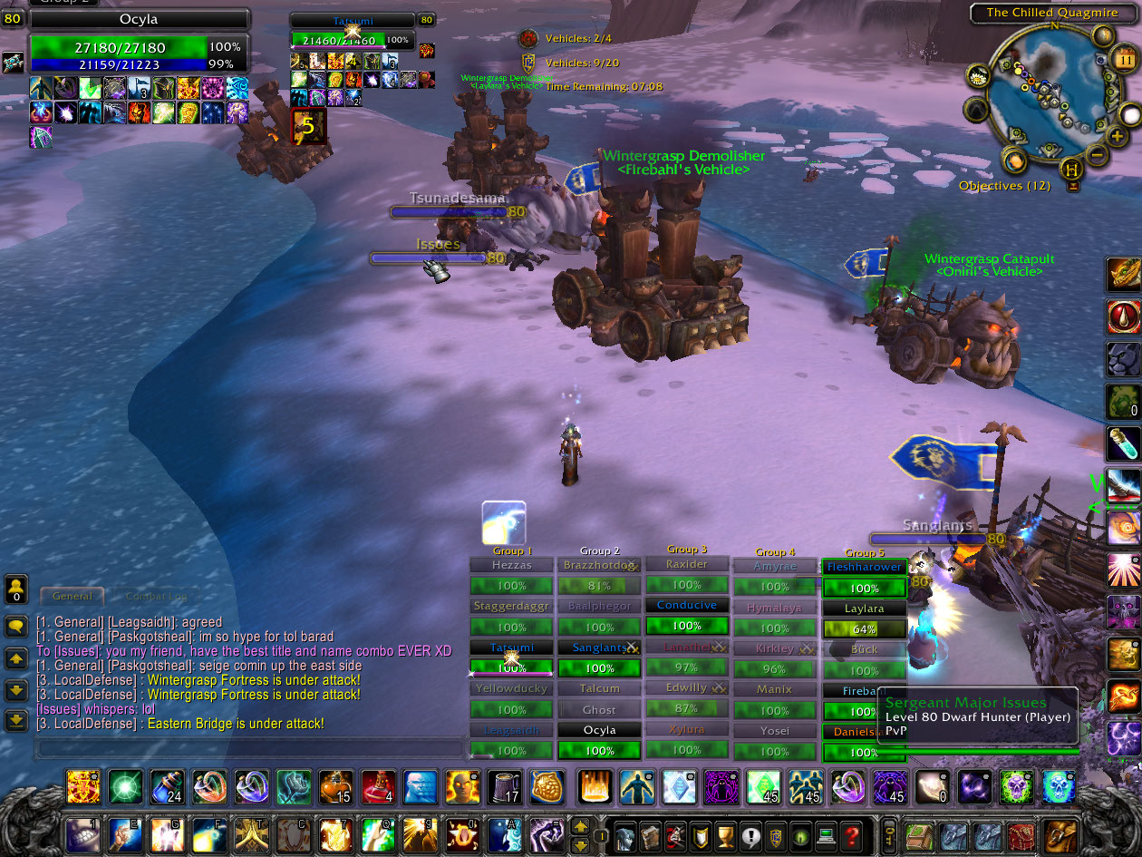 Logged in and saw that WG was already in progress so ran and queued up for it. Other than an annoying Tauren shaman standing on the inner west wall blasting people, it wasn’t very eventful and we spent another round grinding horde into their own camp. I forgot to equip my pvp gear but I still didn’t die at all the entire time!