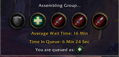 The ready check comes up but a tank declines it so we’re back to waiting again. I hate that. We get in and we pull too much and I die right away and obviously with no heals everyone dies.