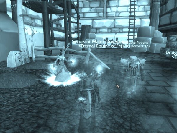 Arashikage is the only friend online and we jabber on about expansion changes. I see someone offering 40g for someone to heal Pit of Saron (PoS). The RS person is being very specific on wanting a SHAMAN healer too, nothing else. Bleh. I decide to offer to heal in the PoS group as I have nothing else going on. We’re still at the mercy of a tank queuing up though so we have to wait quite a bit. Of course, quite a bit in WoW is like, 10 minutes maybe. I remember to put on my Wyrmrest Accord tabard so I can level up rep for them. Average wait time shows 16 damn minutes for PoS, omg what did I get myself into! (I didn’t get 40g btw)