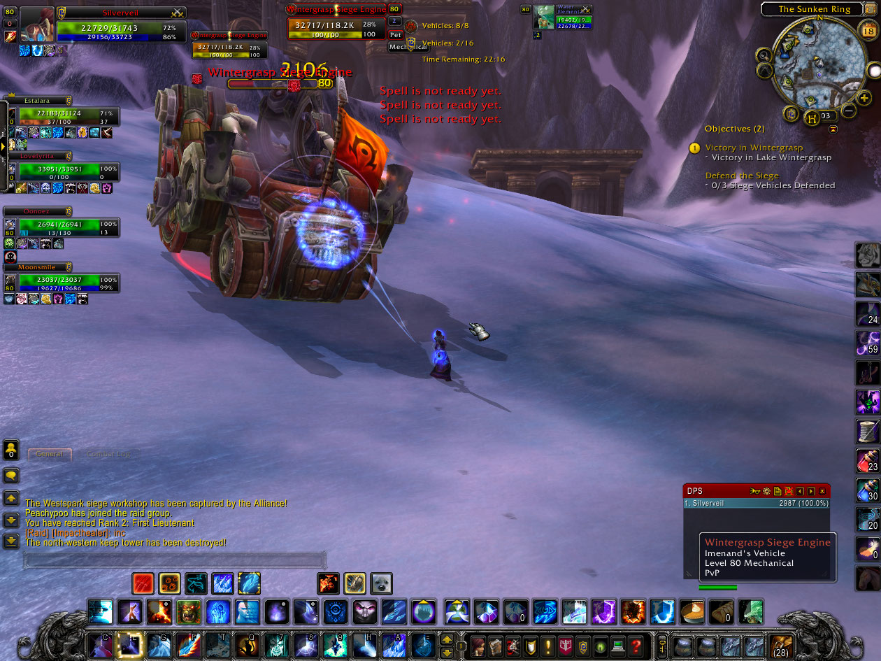 Turned it in and earned some Gold Coins which I sold and Pygmy Oils. I queue up for WG and get in with 8 other people, which grows to around 20. I spent the majority of my time destroying sieges coming out of Sunken