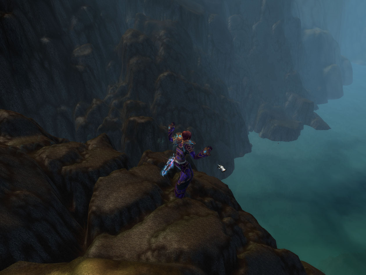 Especially when I slow fall off! I discover the Forbidden Sea. I’m so far out I get the Fatigue Bar even.