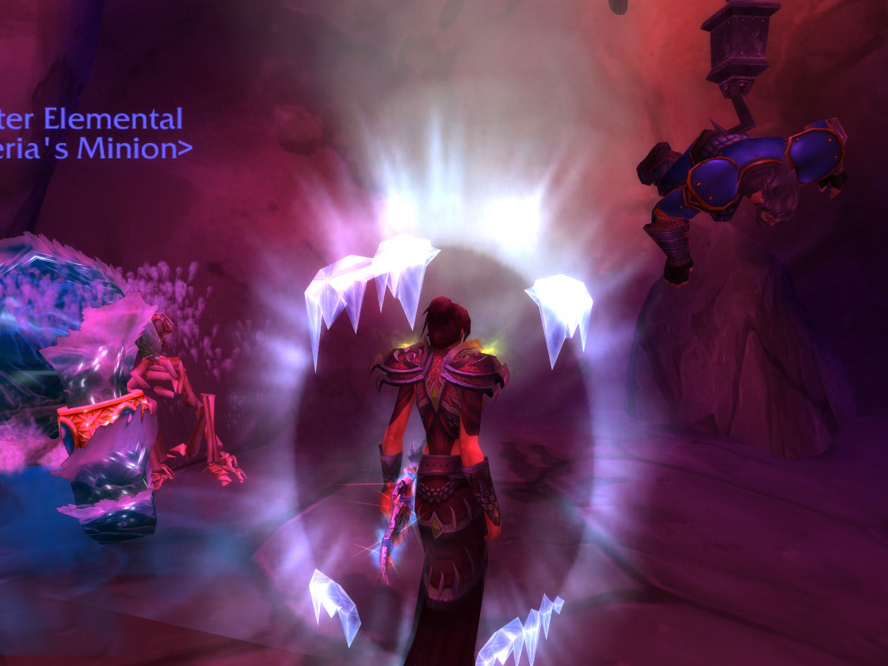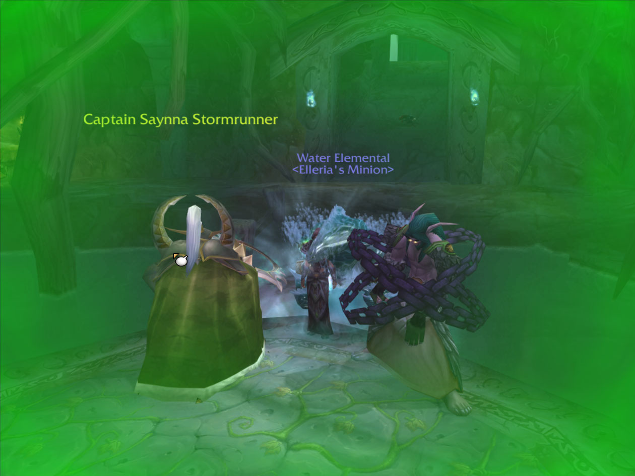 I kill some cultists, fire elementals, nearly get destroyed by a level 83 elite in a forest, etc. I end up taking this night elf captive, and bringing him through the emerald dream (I believe that’s what the haze is) to a dragon who brings him to a safer place.