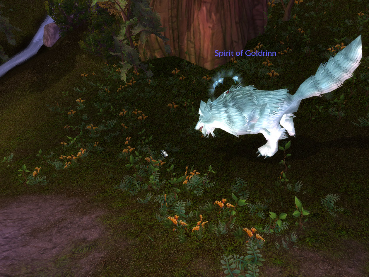 A few more quests in I get to ride the Spirit of Goldrinn, which is explained as an animals hunt instrict, also called “Lo’gosh” (which Varian was called by the dirty horde)