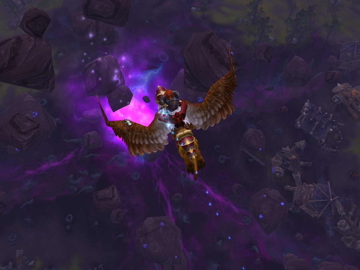 Today I bought the stronger spellthread patterns and then realized I needed 85 to get it. Bleh. I went off to Twilight Highlands to quest. I liked this flying one, where you kill the Twilight guys on the rocks. I first tried to kill them myself on the stones in the air, but after being knocked off twice I went back to get the gryphon.