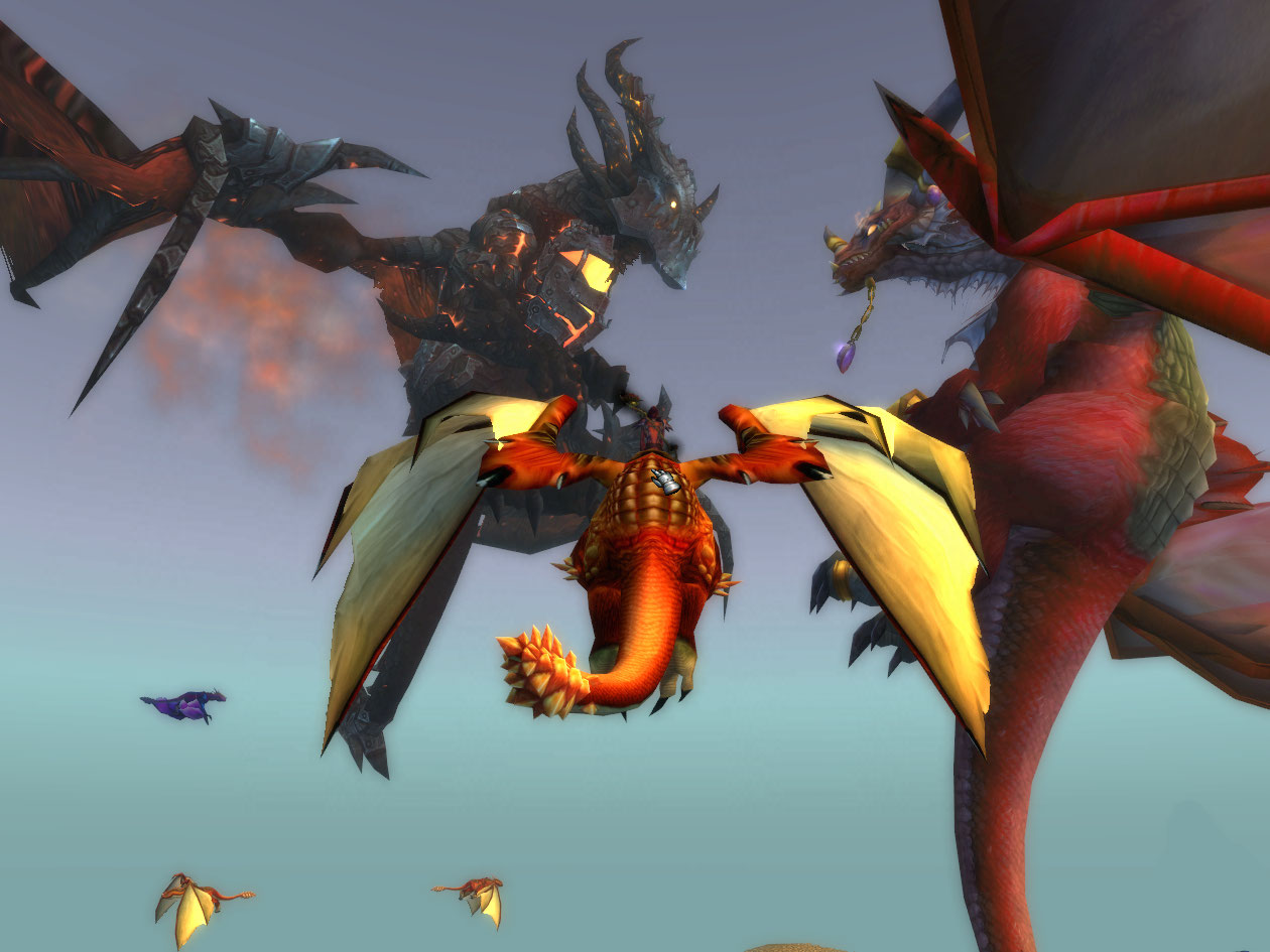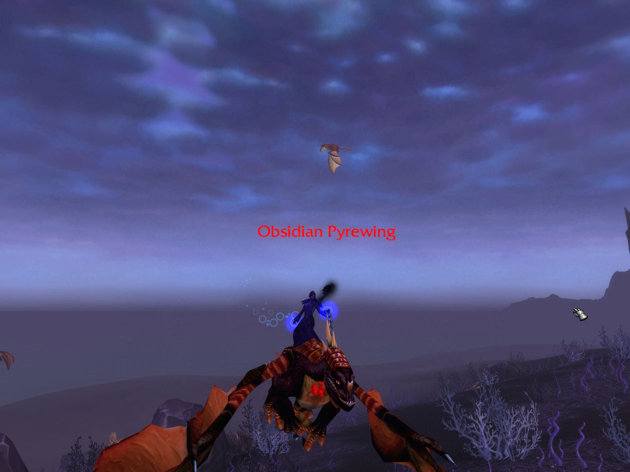 after that part, I get to kill Obsidian Pyrewings by using the mechanic to ride the protodrakes out in Storm Peaks in Northrend, only you must kill them then quickly latch-hook onto another one, or fall off. You take no falling damage it seems but you end up aggroing crap on the ground most of the time.
