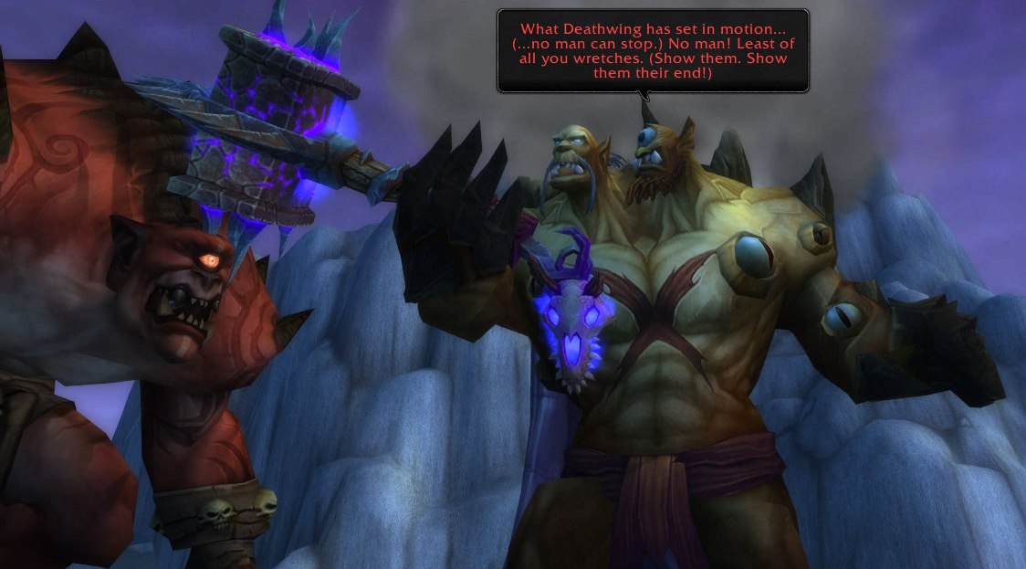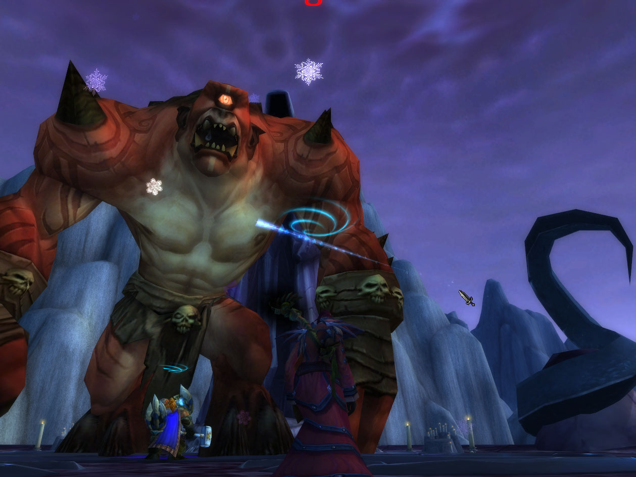 I’m near the end of the Twilight Highlands quests, and go to get the hammer just floating in the middle of nowhere, and then it cut scenes to this trouble and I got whomped clear off the mountain.