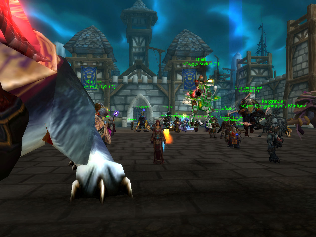 I log in still flagged from battlegrounds the day prior and say hello to Dalaran in ma pvp gears!!