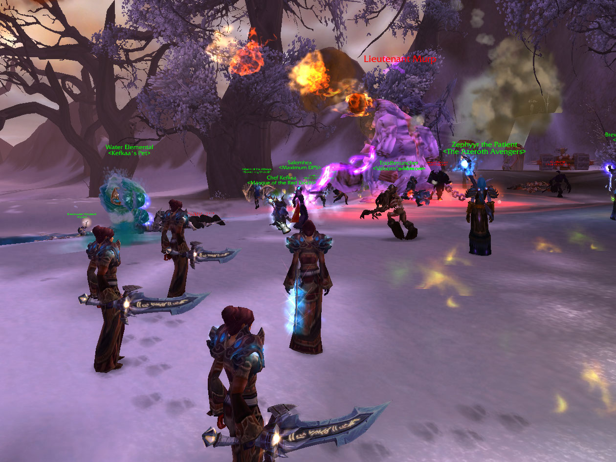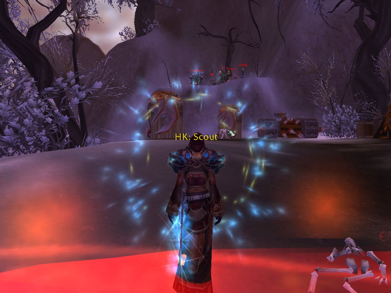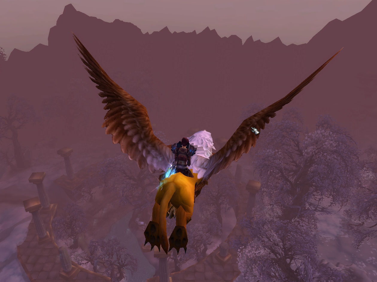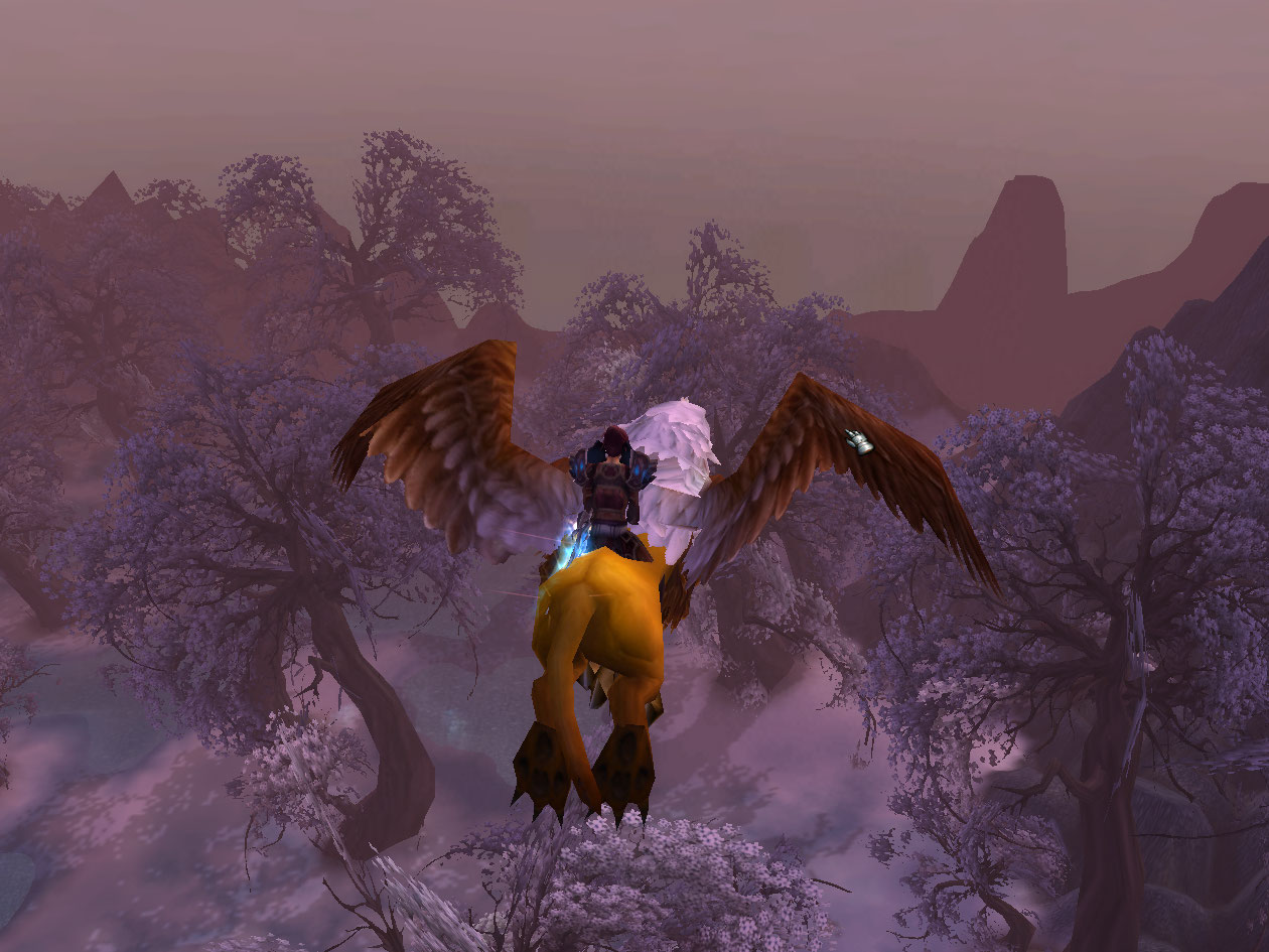 I run down to Marcia Chase and pick up The Ghostfish fishing daily, which is the easiest one IMO. I hop a flight path to Scholazar Basin, along the way going through my favorite area, Wintergrasp.