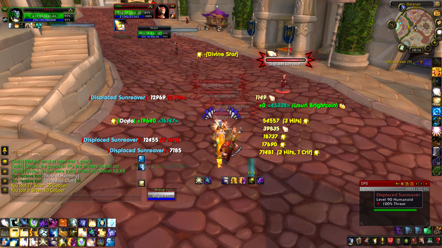Purging of Dalaran Mar31 Finally did the purging of Dalaran quests today. I felt sorry for them until I realized they have a great drop rate on cloth and green BOE’s.
