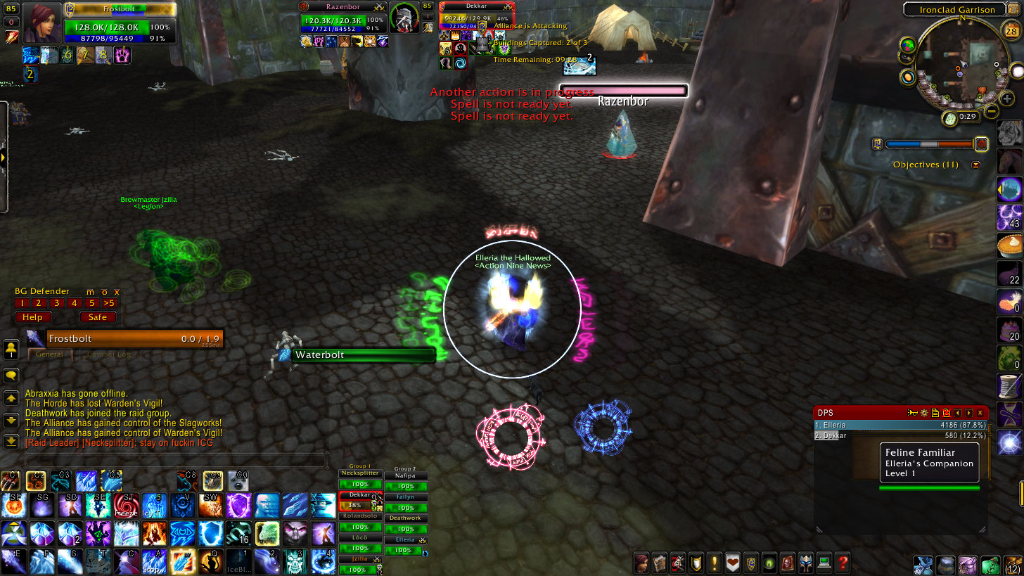 One of these days a horde paladin is going to come to alliance to tell me to stop stealing wings I’m sure. I stole this one paladins, Yresa I think the name was, at least 5x in one battle. Then they tried to kill me with a dk and someone else when I was at our guards outside of the bridge, but I blinked back out of the death grip, snared them a bunch of times and another alliance player helped beat them to death. I blew kisses a few times, poor guy. At about 24 keybinds I am running out of places to comfortably hit skills though, after taking fire talents to make fireblast useful enough to stick on one.