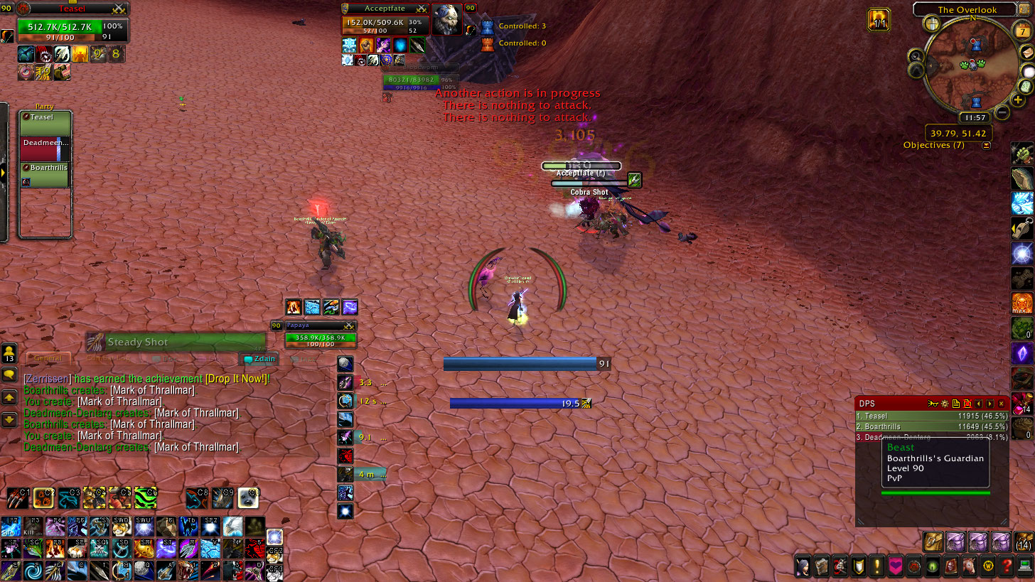 I’ve been running into Boarthrills, a hunter, a lot in WG, and TB, and one day we grouped up around Hellfire/Nagrand killing ally. We later grouped with Deadmeen who I’ve been helping gear up on Timeless Isle.