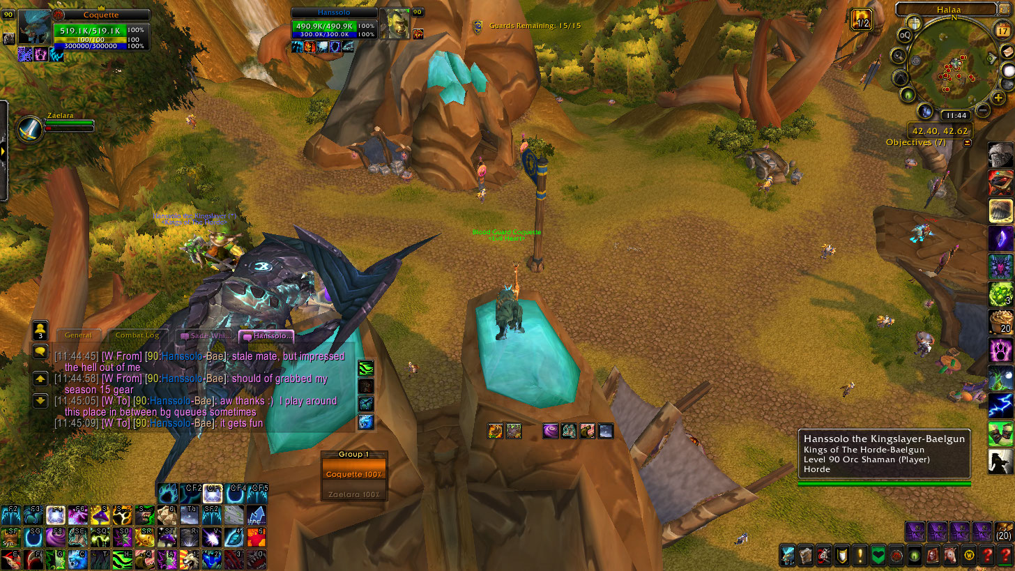 Later though, we ran into this mage, and 2 hunters that just destroyed me. The damage itself wasn’t that bad, but the BLANKET FUCKING SILENCES omg fuck it. That and a 1,000 yard run from Halaa to Garadar was annoying.