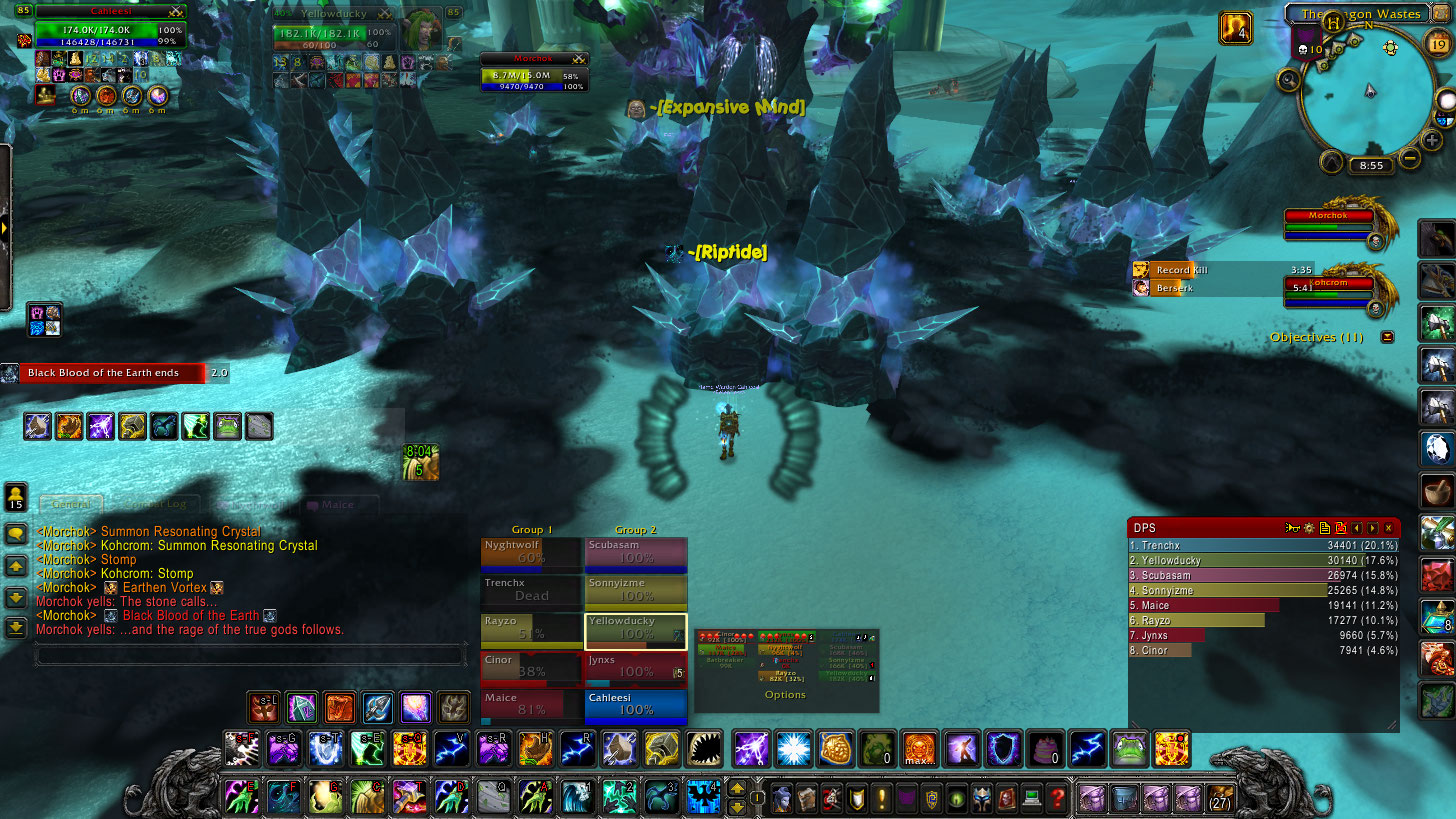 Did Zon’ozz on normal. Tried Heroic Yor’sahj but it was like we were new again, and had people killing the mana ball at the wrong times AGAIN. At this point Scuba kept disconnecting every 30 seconds or so, so it was bizzare they assigned him to heal Cinor who was tanking. We wiped on that about 5 times and then killed it on normal.