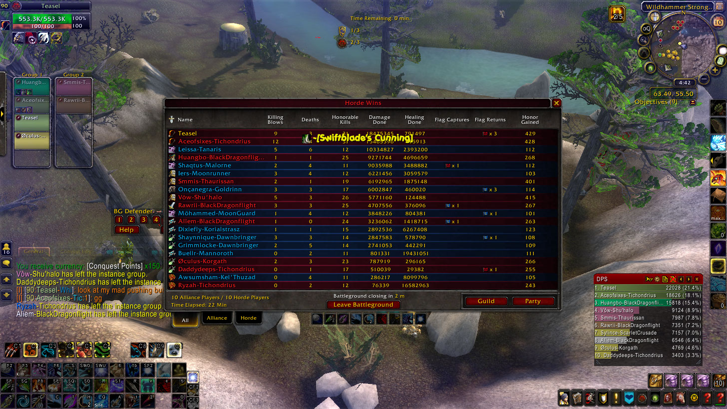 For some reason, I got Twin Peaks 3 times in a freaking row today. The first one I waited EIGHTEEN MINUTES to get into. At first I thought it would be a loss, the other team had 2 warlocks (fears) 2 holy priests (more fears) and a resto shaman. But I said “NOT TODAY” and pushed buttons very hard and clicked very fast and we won.
