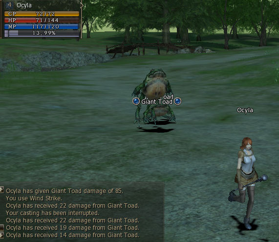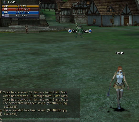 I attack a Giant Toad on the way to the village and two aggro me and I’m half health before getting off a second shot. I run.