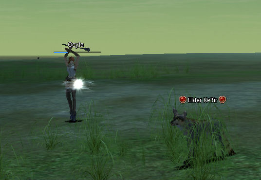 The Newbie Guide informs me I cannot have helpful magic until level 6. He gives me 100 spirit shot and 2 recovery scrolls though. I do not see any other players so I head out and get level 6 on some Keltirs. I pick up some Pants from drops only now, since all drops from mobs fall on the ground!, however I cast REALLY slow [5]. I put my stockings back on. I get a Tunic which I can use.