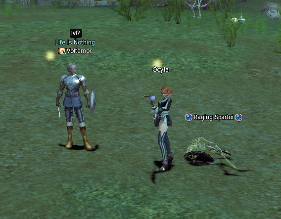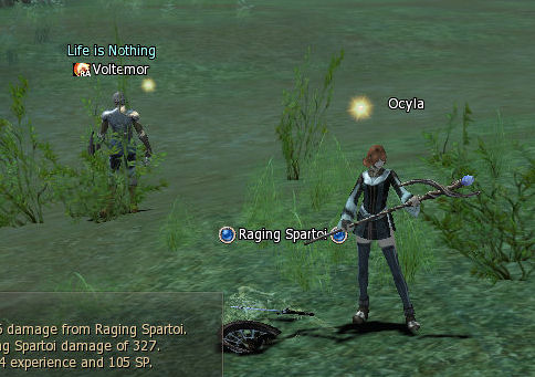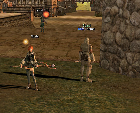 I roam around this time finding Guard Curtis with a quest that lists the reward as adena, even though it’s “undecided”. I also discover that I can /target (name) something and target it again, or hit an attack skill and I’ll run to wherever it is. That’s handy.