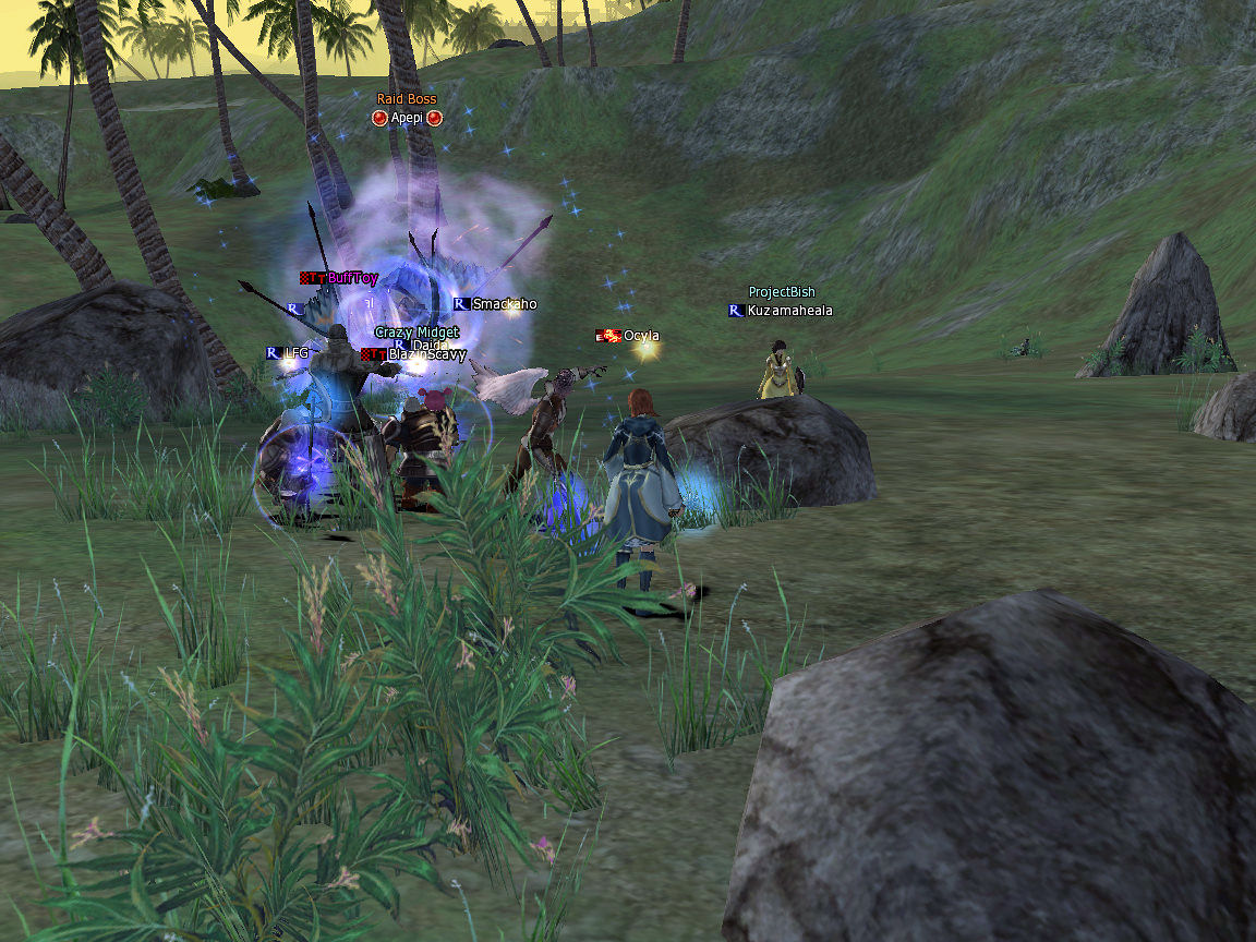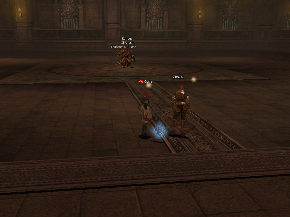 I go back to Dion and call out for anyone to do a kama, no luck so I move to Gludio where I pick up level 28 Kakauk. We try the level 26 kama. We fail and get nothing for like 2k shots. Oh well. That fight was just tank and spank with an add that showed up now and again. We lost with a sliver of hp left on it.
