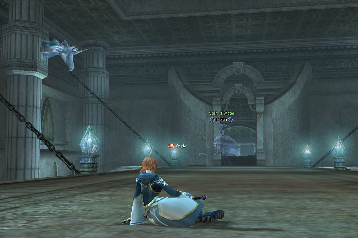 I go back to Hardin’s and start grinding (which is boring as hell), which seems to be the only reliable way to get cheap exp and actually earn some money. The mobs show their displeasure by bubbling what seems like more than EVER. Sigh. Zouboulis gives me some advice for my pailaka trouble and offers prophet buffs for next time I go. I don’t plan on it until 40 though. He (I always assume he) says I can borrow +16 duals for the last boss and it will be easy. 16 at D or C grade IMO is still very impressive and generous.