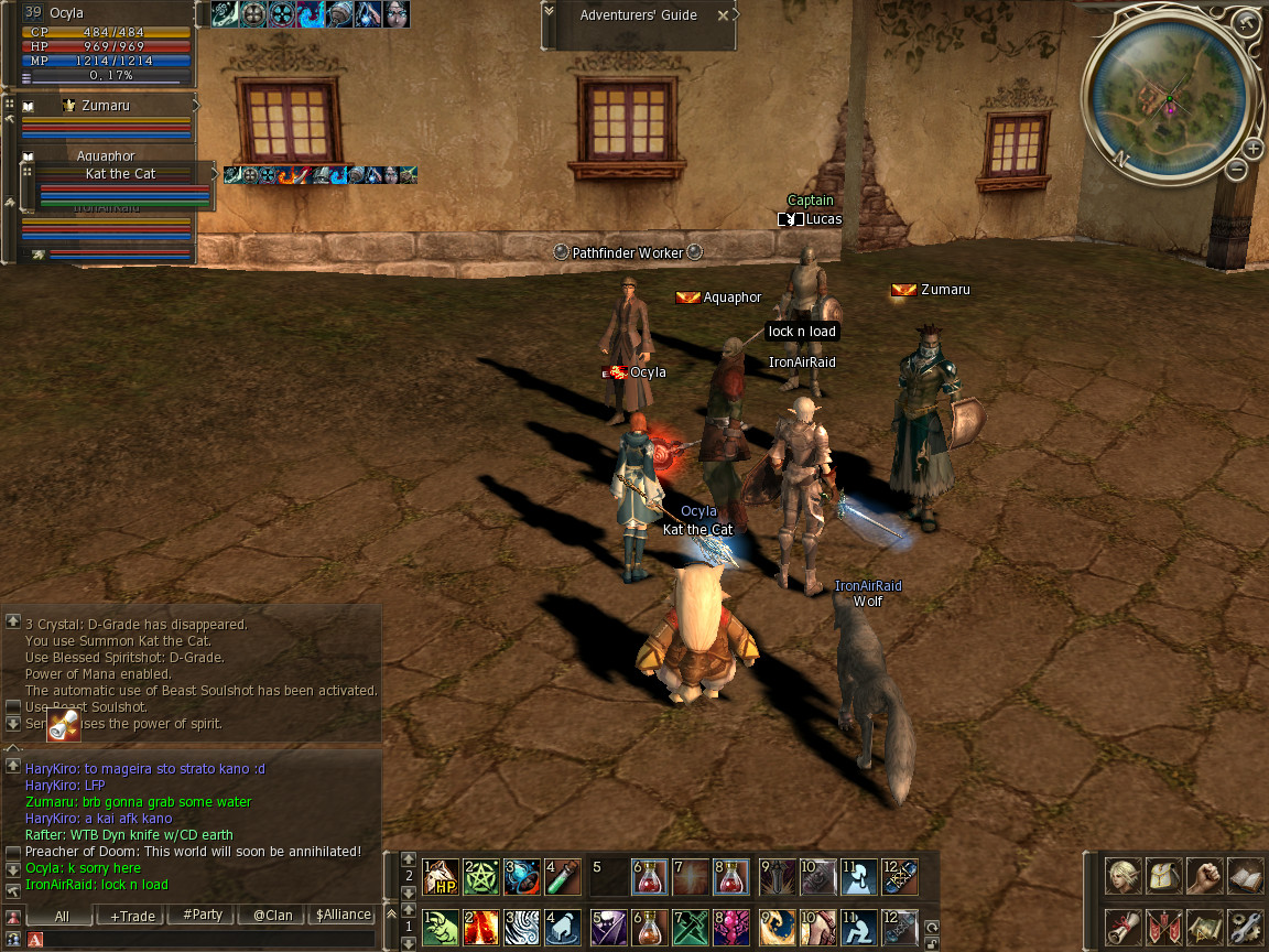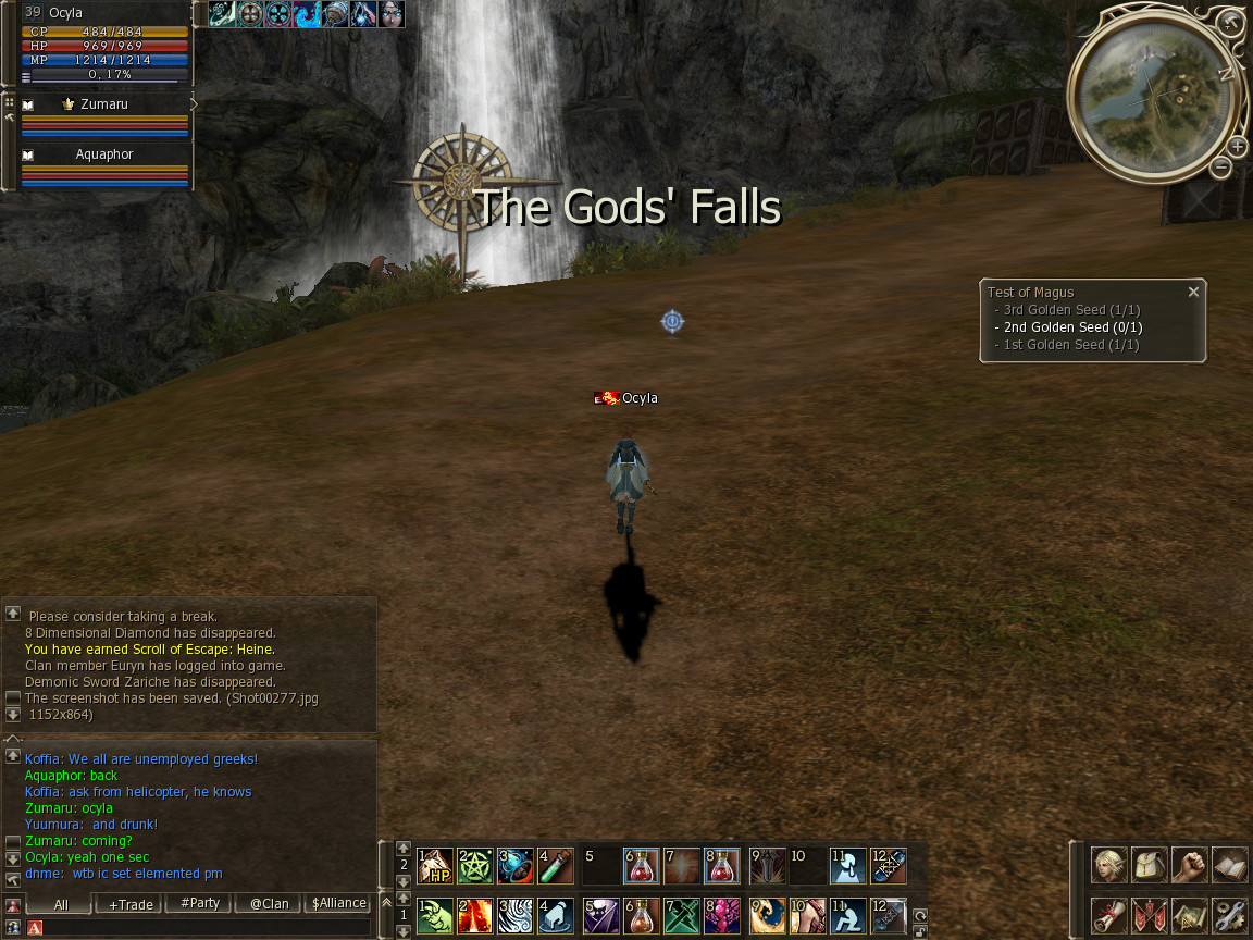 Out of shots I head to Dion to find some more but no shops have loaded yet. I scan through my quest list and see a level 39 which is in Dion Temple, right near where I ported. Someone in clan posts they are “poor” with 9 million adena and in my noobish venting I post my sad little pile of adena and cry asking how anyone makes money in this game.