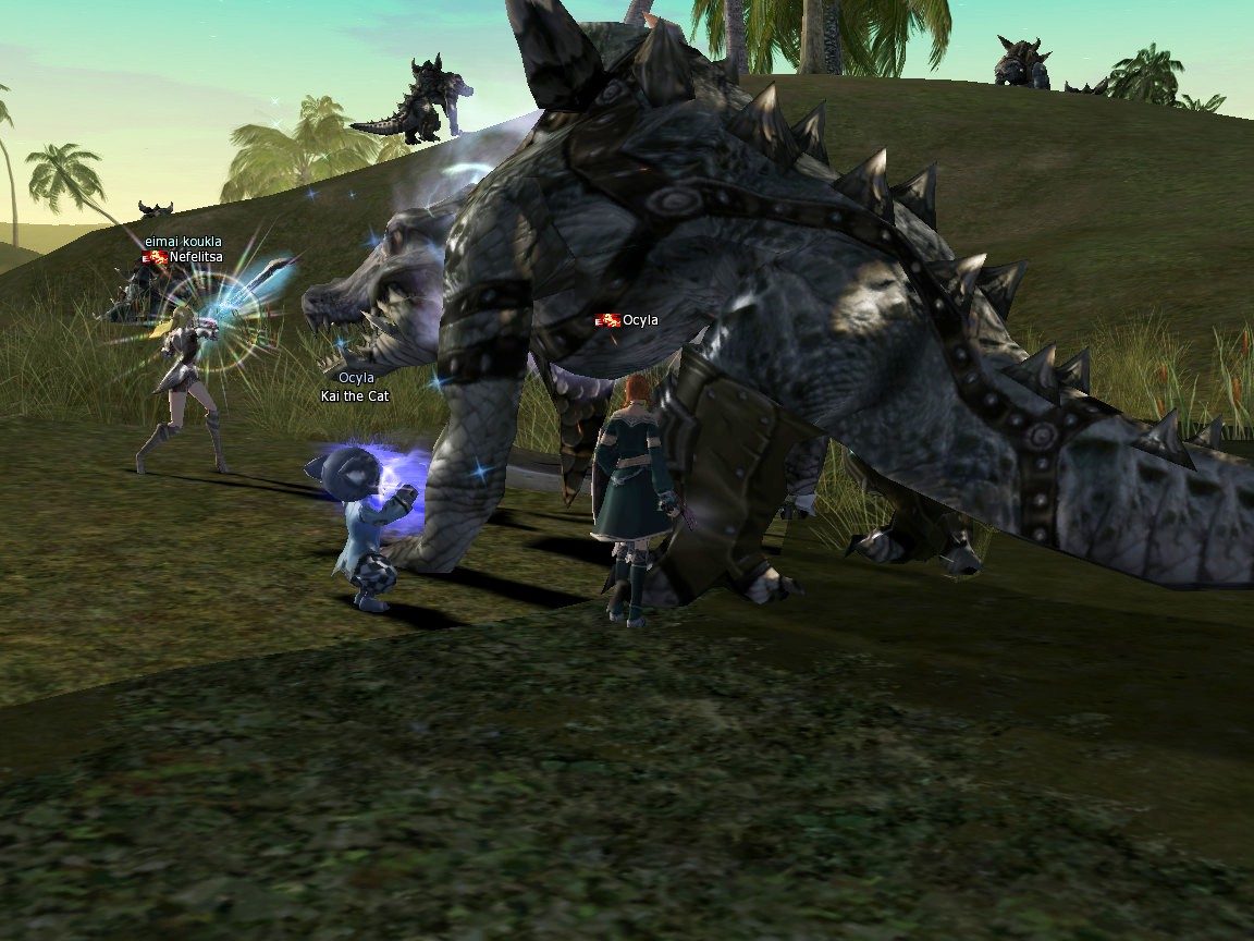 I set up shop in Dion to sell all those EAD’s I don’t need right now when the screen turns red because the Blood Swords dropped in the plains of Dion. I forget all about clan wars and port to go see when I die from Tekshu shortly after porting.