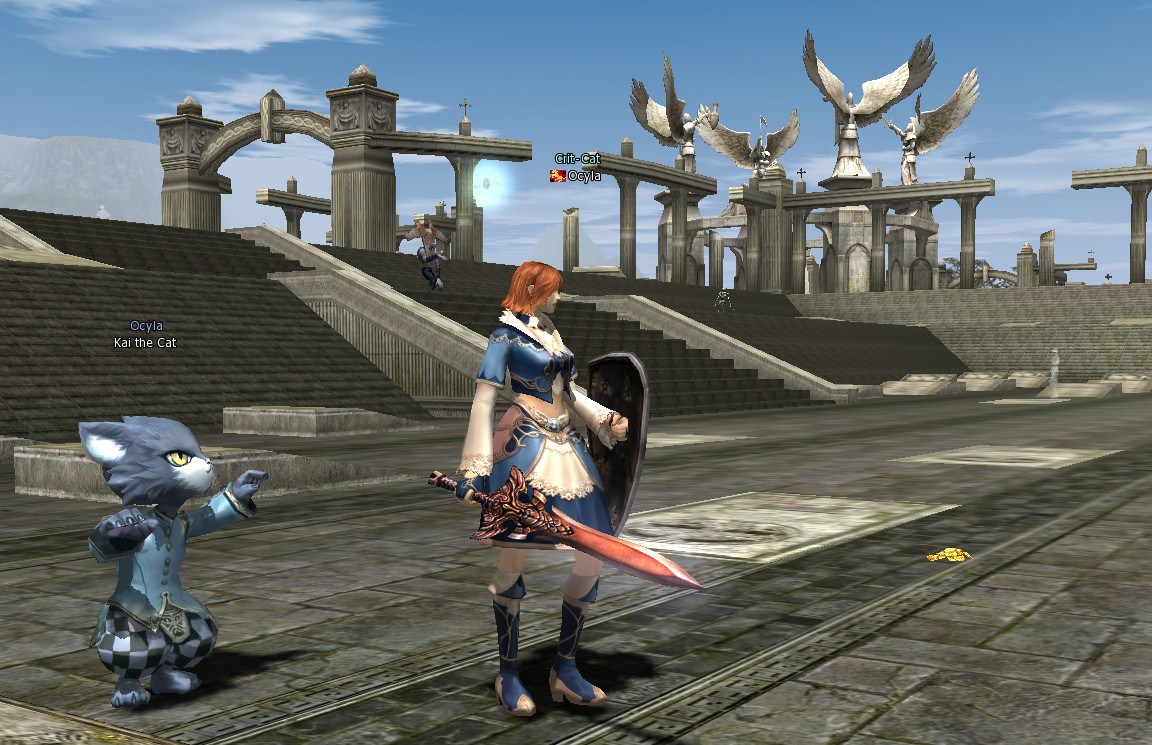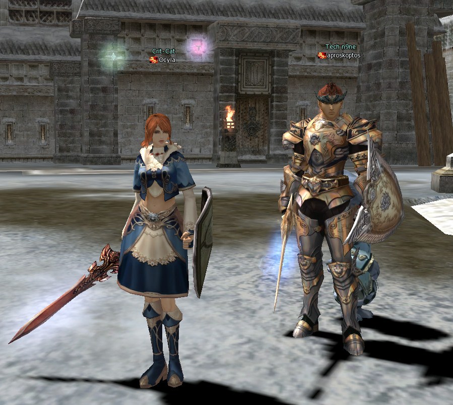 Back in town at the buffer I run into this clan member, with the sweet Imperial Crusader armor. I think this is my favorite S grade set. The shield is easily the best looking in the game.