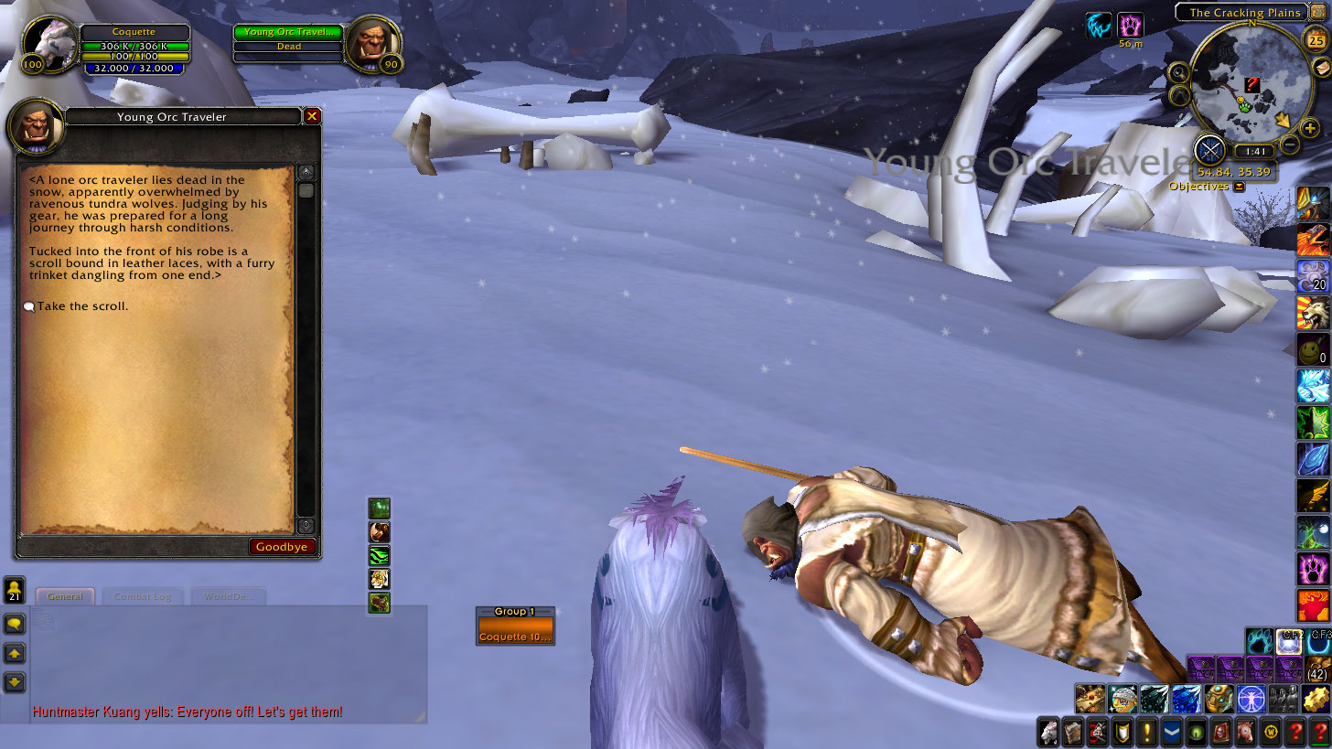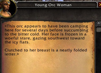 When I was looking for the treasures for the achievement, I took off of Nagrand, since everything was ON A HILL and I DON’T HAVE FLYING. That took me out to Frostfire Ridge. I first ran into this orc.