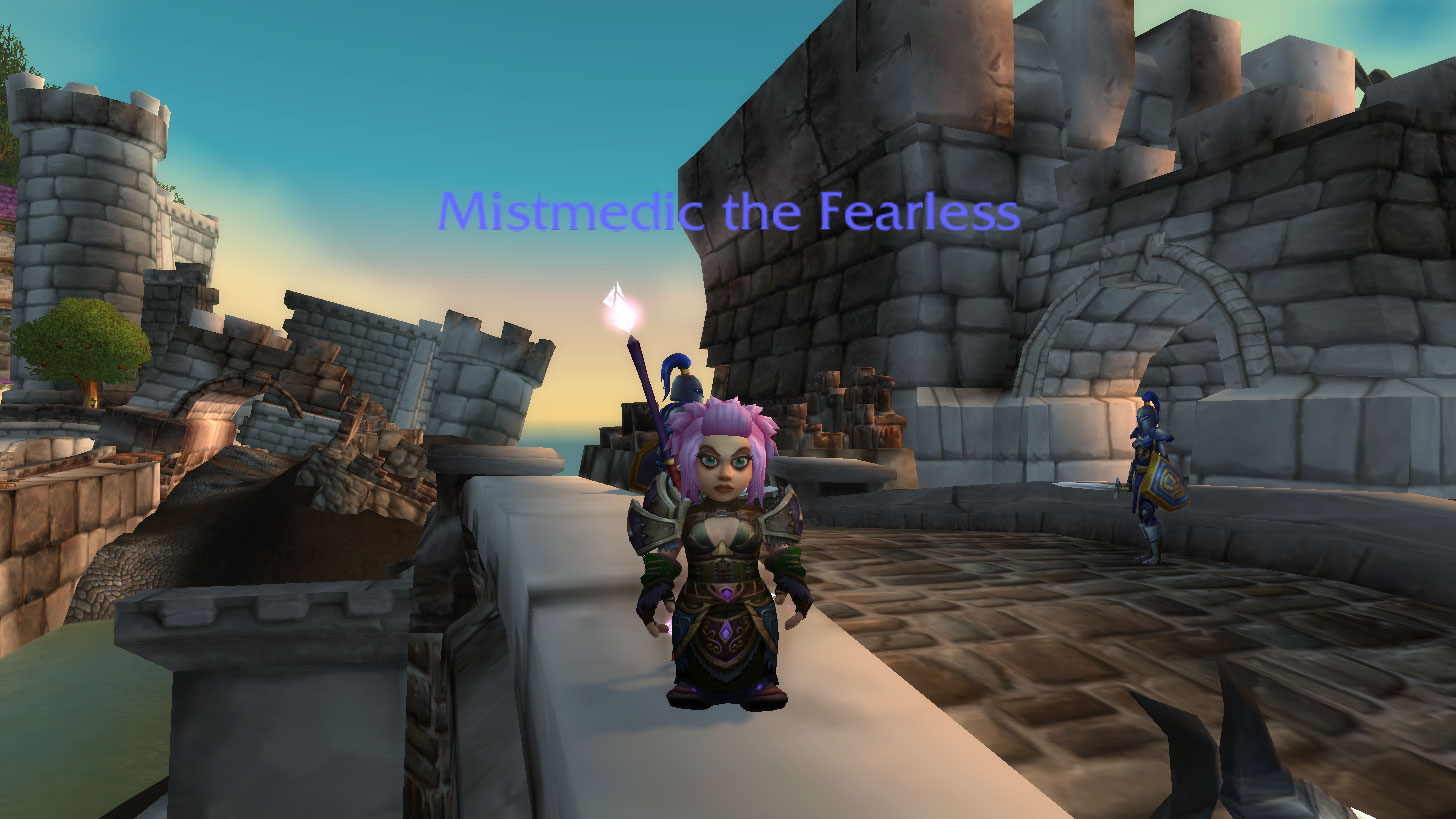 First, went back to my favorite robe transmog, just with slightly different shoulders. The one-shoulder archer look doesn’t pan-out as a gnome.