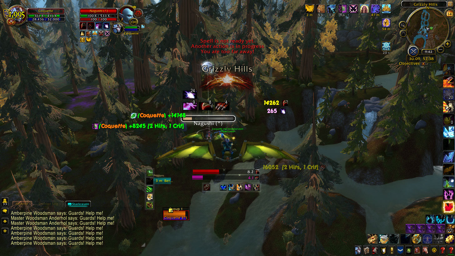 Got my CP cap for the week so decided to go feral and do some world defense again. Killed a mage around Ironforge and Kharanos, then moved out to Amberpine Lodge, where I fought this warrior named Nagushi-Thrall (Drwatson). I forgot I had sold my cloak, and upon repurchasing, hadn’t put a glider kit on it, so after he kept taking off with the glider to avoid a death, I followed. Only, I didn’t have a glider.