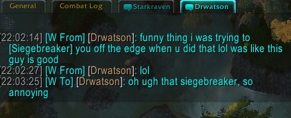 Then he returned with a DK, I jumped him to start then the warrior showed up. Got the DK low, typhooned the warrior off the edge, then finished the DK. Killed the DK a second time a bit later while the warrior watched (I found out they are roommates) and then almost got the warrior again (he runs on CD). Then he btagged me, but was pretty cool.