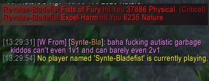 Why U Halfta be Mad? Oct28 This was from a WW monk who chose to run into the loving arms of me as feral, and a rogue, on the quarry boat in IoC.