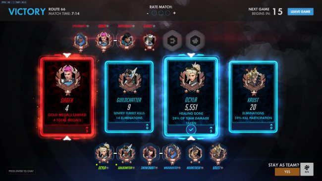 Then in the above picture, I had done a 3 person rez to clutch the game to a win, by rezzing on the payload, right on the delivery point. Instead it went to a Roadhog who killed those 3 people before I rezzed them. You see me rez in the game so I did my usual joke of “I was in a …. PLAY OF THE GAME!!” They complimented me, I complimented back. Then at the end of the night, they friend requested me. We were never on the same team all night, just played against them. It should be interesting if I’m able to get them into a group another night.