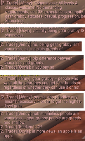 I had this dumb conversation in trade today. This person is basically describing shameless behavior, like being ‘gear grabby’ but then labeling it with other words.