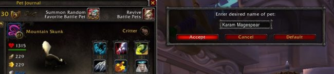 I then immediately named 2 battle pets after Karam and Raest. I may switch them to squirrels though if I have two that match.