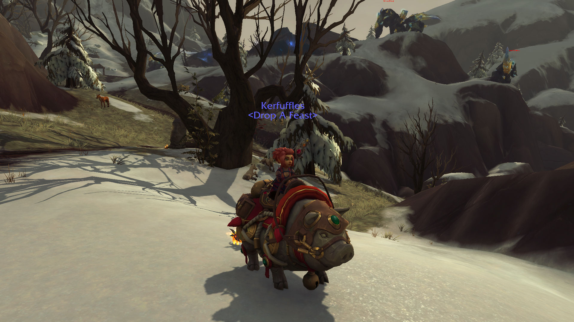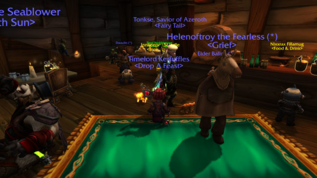 Speaking of all over, there was a mage tavern crawl event recently which was pretty neat. You got ported to different taverns and I had fun guessing what continent or zone I was in without looking at the map or looking outside of the door. I was right most of the time! There was food and drink around and even little costume things. My favorite was the “Mechs on the Beach” drink.