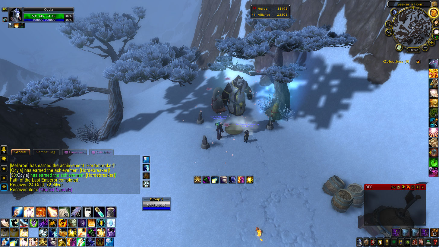 Yesterday and last night, with the help of Iocane, Durieldb, and Nilvana on his monk, I banged out the Hordebreaker title. I just couldn’t let it slip! Also, I got to be a metal cat, yay!