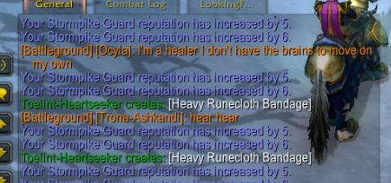 The next WSG was even worse so I ended up just standing in the GY and afking basically. They were yelling at me saying I was just running mid over and over and dying but it was like duh, I was looking at the dots on the map, riding out to heal them, and would get murdered in mid by like 5 horde with no alliance around over and over. So yeah, I DID die a lot but I’m a healer and I’m trying to get to you guys, but now fuck you all.
