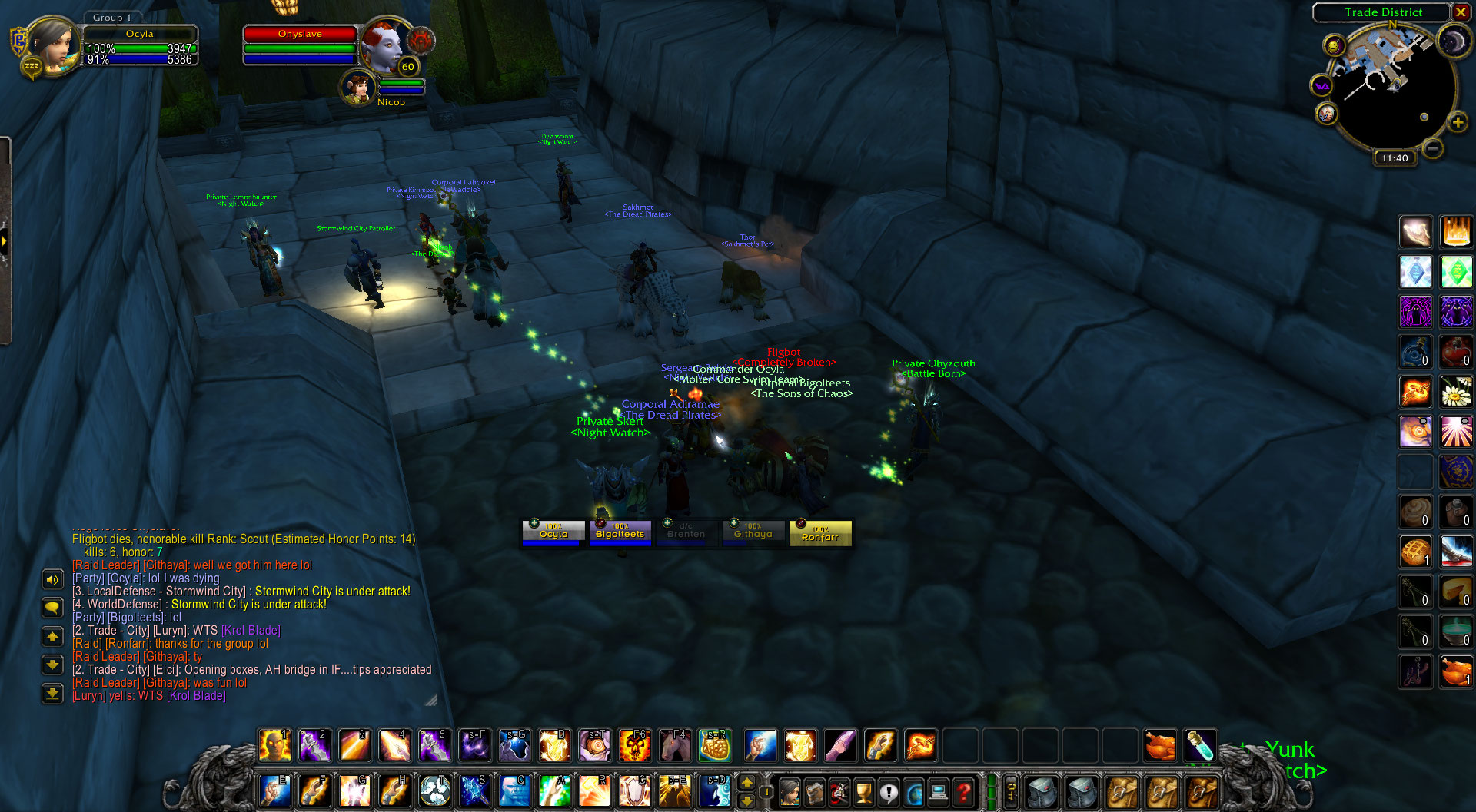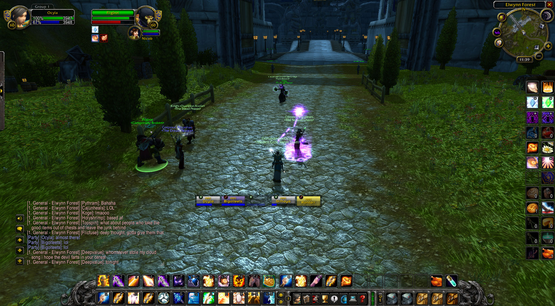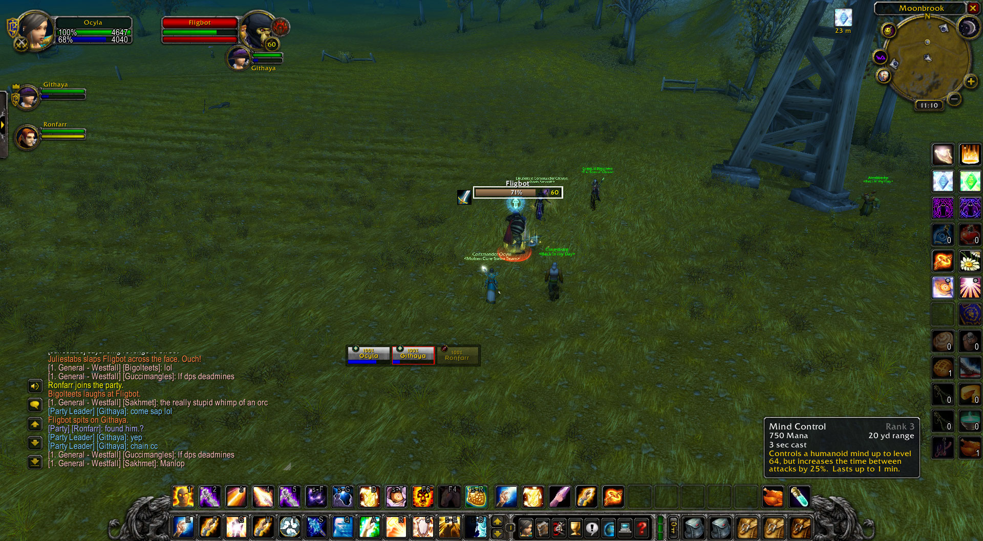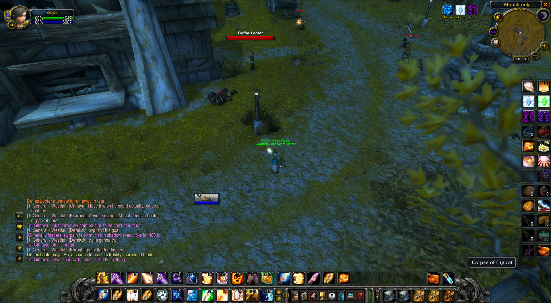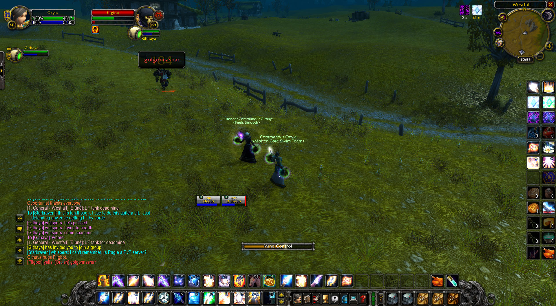 After a while we had attracted the attention of more 60’s like a warlock and a rogue, and we kept this warrior stunlocked for a good 10 minutes. We decided he needed to face justice and I shit you not, we feared, MC’d, sapped, stunned that horde from Moonbrook all the way to Stormwind! He kept trying to hearth out and started yelling things, but it was no good because I kept him healed during the other priests MC so we could bring him to justice.