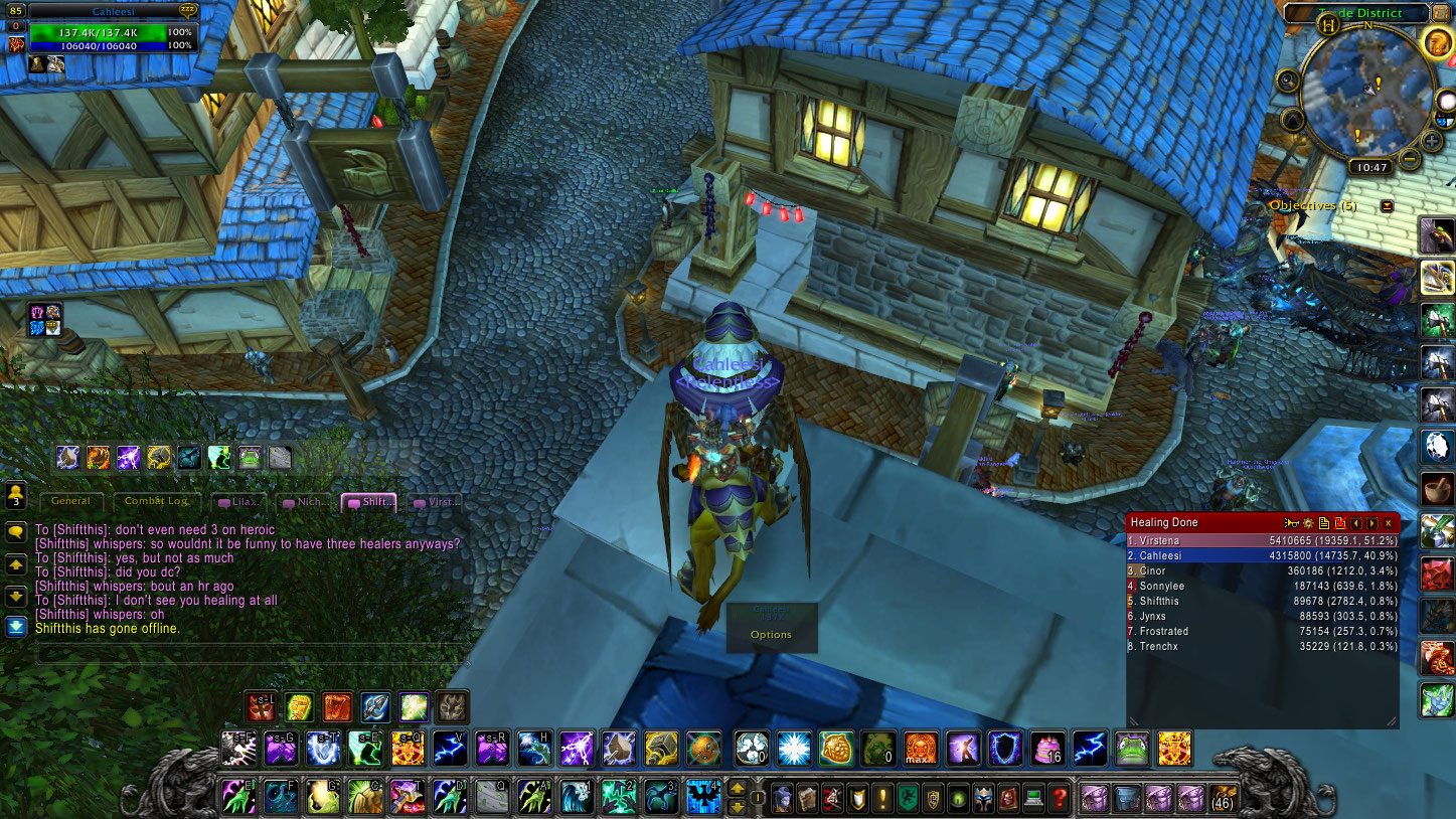 Our druid though, gosh, I just don’t know. My druid healer is only 44 at this point so I’m not going to pretend to be any kind of expert, but across the board their heals were on the low side and typically came in as the lowest on each fight. After Rhyolith we lost a dps, so the druid said we can 9 man Alysrazor. I said “9 man with 3 healers, lol” and they asked why that was funny. Beeeeeecause you don’t need 3 heals, so you are basically running with 4 dps? Besides that obvious bit of information you mean?
