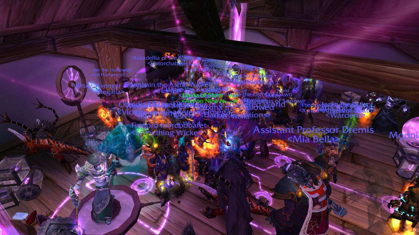 The patch dropped and I found myself not really sure what I wanted to transmog on this char. For now I went with Robes of Dissention and Archus Greatstaff of Antonidas. I like the firelands shoulders too much to switch.