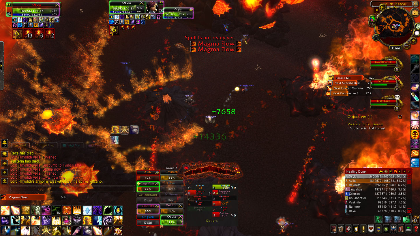 Did a LFR with Maice even though I could not roll on loot, which went well. Afterwards I was asked by Rexe to come heal a normal FL. We started with Beth which we two healed and I put out something like 22k hps to get through that, barely, had to pop every mana CD I had. We skipped Shannox and went to Rhyo which went poorly,